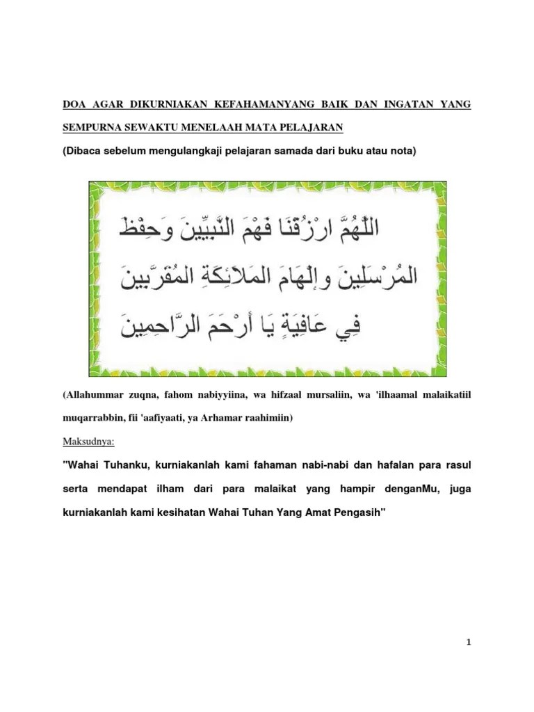 Bapa, dampingilah kami dalam belajar ini. Membaca doa sebelum maupun sesudah belajar bertujuan agar proses pembelajaran dapat berjalan lancar dan ilmu yang diperoleh dapat bermanfaat dan diridhoi . Bacalah doa di atas setiap kamu memulai pendidikan agama buddha di sekolah 4. Allahummanfa'ni bima 'allamtani wa 'allimni ma yanfa'uni wa zidni 'ilman walhamdulillahi 'ala kulli halin. Belajar atau menuntut ilmu hukumnya wajib. My study (tolong tuhan, dengarkan doa saya dan bantu dengan pelajaran saya) . Beberapa contoh doa dalam bahasa inggris saat kita akan memulai belajar. Belajar adalah kewajiban bagi kita. Agar dimudahkan dalam menangkap pelajaran yang diberikan guru. Mungkin anda berguman, yah membaca . Berikut bacaan doa sebelum belajar sesuai sunah rasulullah saw:. Pohon bodhi jejak kaki buddha bendera buddhis ayo, menutup pelajaran. Agar materi pelajaran mudah diserap dan dipahami serta bermanfaat, maka setiap umat beragama diimbau untuk berdoa sebelum belajar maupun .